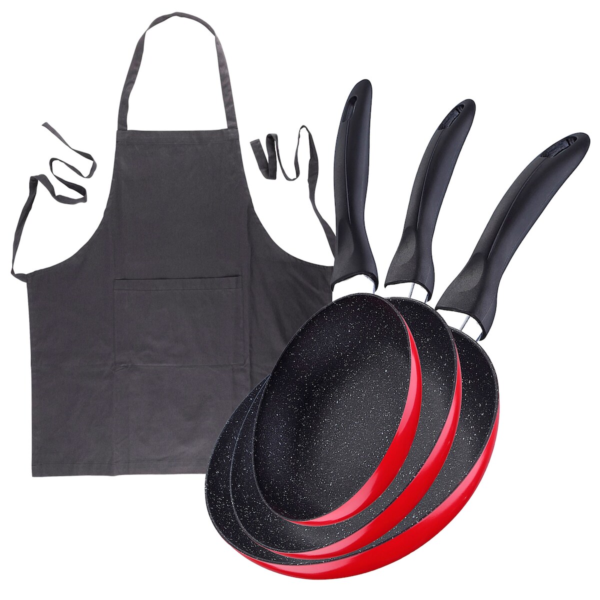 BERGNER - Set aus 3 Pfannen mit Marmorbeschichtung Ø16/Ø20/Ø24 cm Küchenschürze Dunkelgrau 100 % Baumwolle 75x80 cm