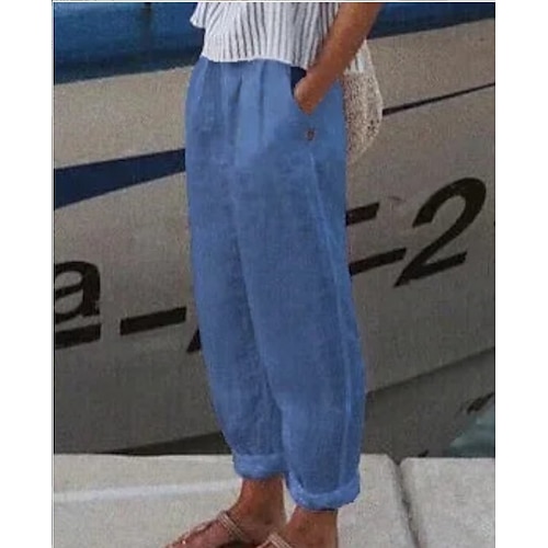 Per donna Pantaloncini in cotone e lino Pantaloni ispirati al lino Pantaloni in cotone e lino Casual Lunghezza intera Naturale Semplice Tasca Design con Coulisse Elastica All'aperto Confortevole