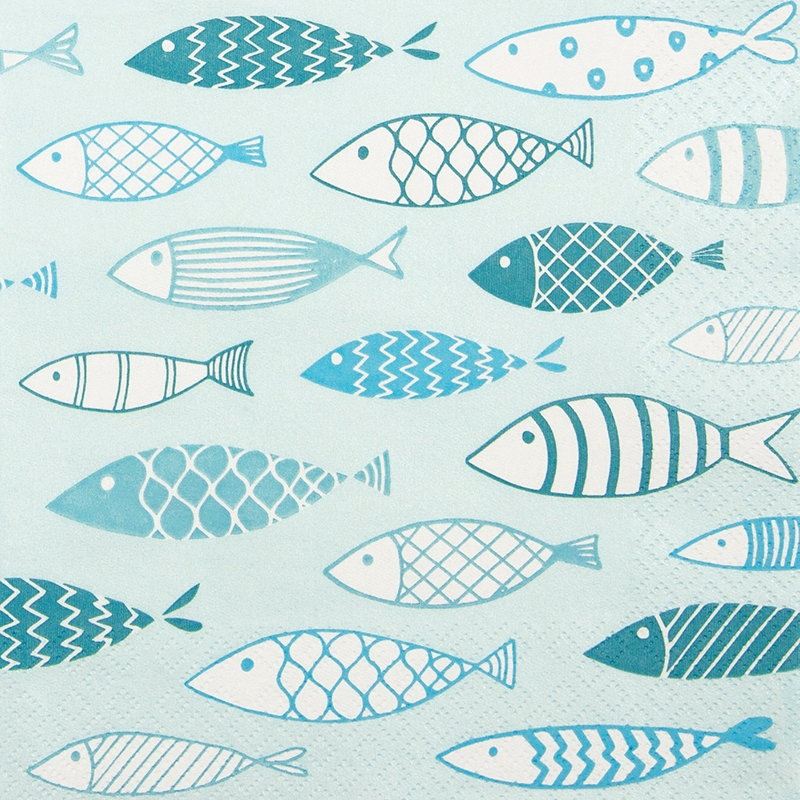 Home Fashion, Fish on Tour mint, Lunch-Servietten aufgefaltetes Maß 33 cm x 33 cm, im Viertelfalz, 20 Stück pro Pack