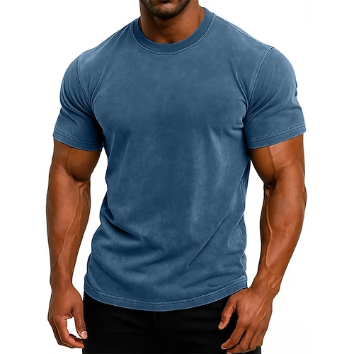 Per uomo Maglietta Manica Corta Maniche Corte Girocollo Estate Tutte le stagioni Tinta unica Vintage Moda Designer Lavato Vacanza Streetwear Casuale Nero Blu Marrone Maglietta Top per Uomo