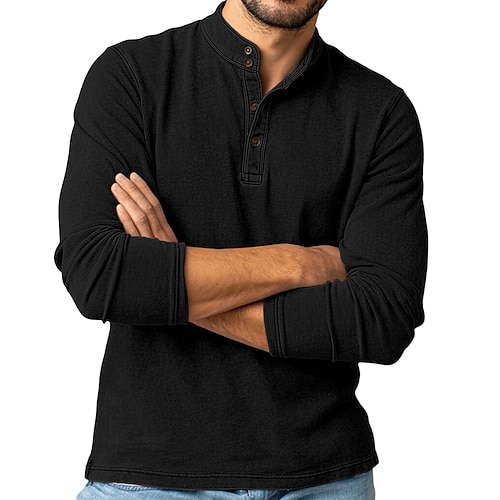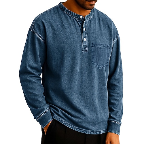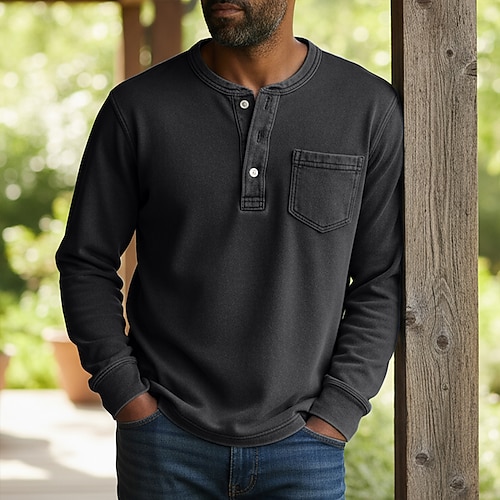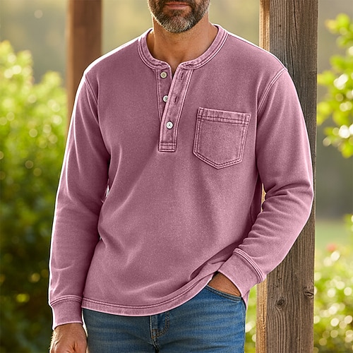 Per uomo Maglia Henley Camicia 100% cotone lavaggio acido Manica Lunga Henley Primavera Autunno Tutte le stagioni Vintage Retrò Vintage Casual Stile Vintage Lavato Casuale Blu chiaro Nero Rosa
