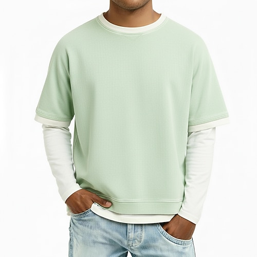 Per uomo Maglietta Camicia 100% cotone lavaggio acido Manica Corta Girocollo Primavera Autunno Autunno Inverno Semplice Vintage Streetwear Casual Blocco di colore Finto due pezzi Lavato Casuale