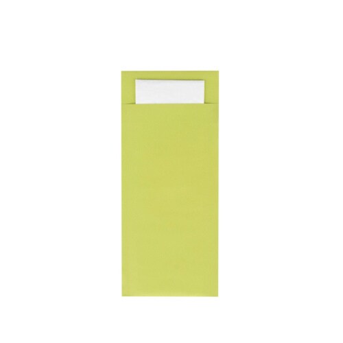 Mank Bestecktasche in Lime 85 x 200 mm, mit 2-lagiger Tissue-Serviette in Weiß - 500 Stück