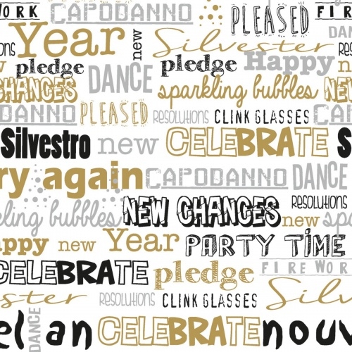 Mank Cocktail-Serviette Airlaid San Silvestro in Silber-Gold-Schwarz, 25 x 25 cm, 50 Stück - Silvester