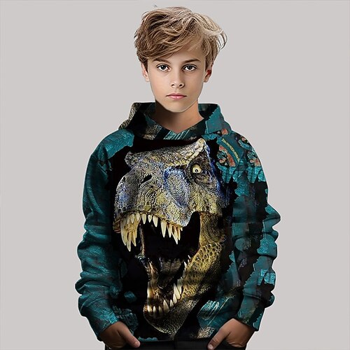 Jungen 3D Dinosaurier Kapuzensweatshirt Langarm Frühling Herbst Mode Streetwear Kinder 4-12 Jahre Mit Kapuze Outdoor Lässig Täglich Normale Passform