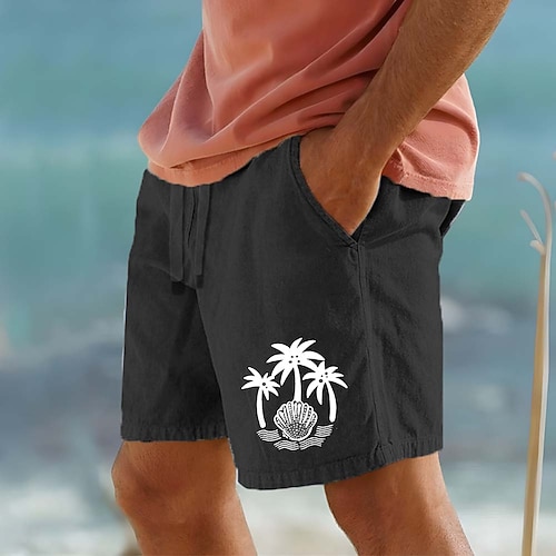 Per uomo Albero di Cocco Conchiglia Piante Tropicali Shorts Shorts da Spiaggia Pantaloncini di cotone Misura del girovita medio Hawaiano Casual Quotidiano Spiaggia Ferie Tasche Laterali Coulisse