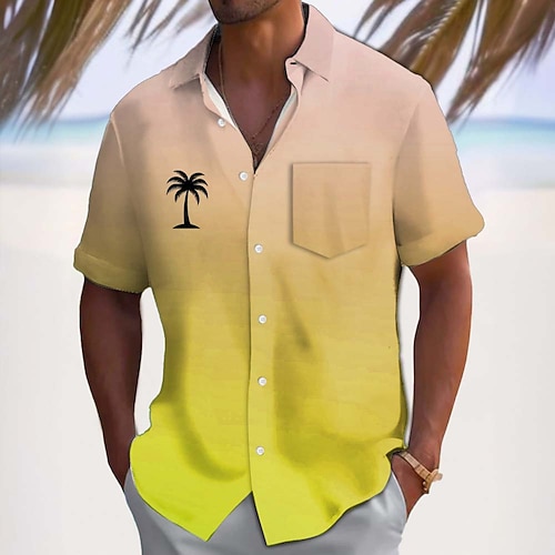 Per uomo Albero di Cocco Colore sfumato Piante Tropicali Camicia Camicie hawaiane Camicia Aloha Manica Corta Hawaiano Vacanza Ferie Estate Collo ripiegato Stampa 3D Una tasca anteriore Camicia tipo