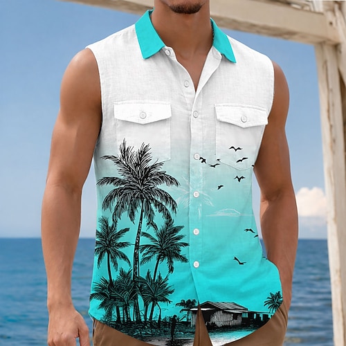 Per uomo Albero di Cocco Colore sfumato Piante Tropicali Camicia Camicia hawaiana estiva Camicia Aloha Senza Maniche Resort Vacanza al Mare Estate Primavera Collo ripiegato Stampa 3D Due tasche