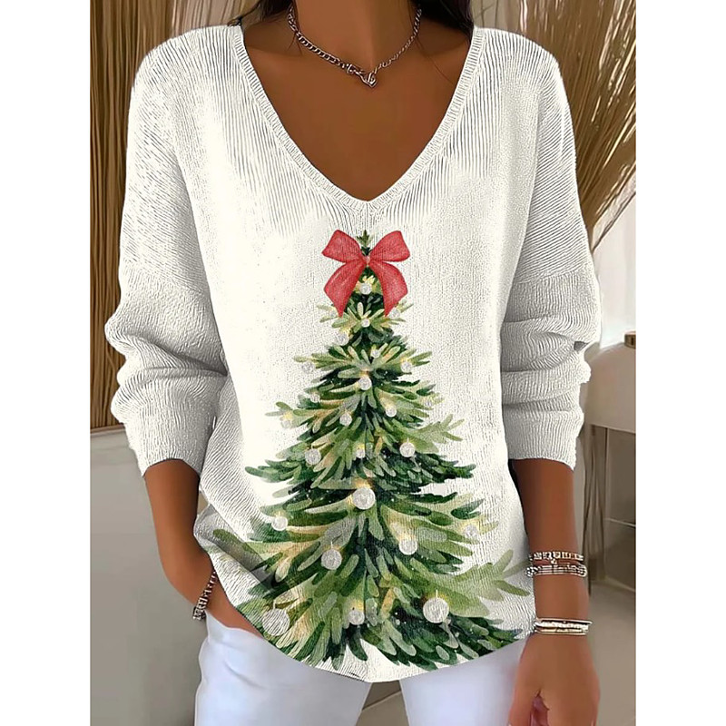 Christmas Women's Christmas Tree Sweater Pullover Fashion Streetwear Casual Graphic s V Neck Oversized Knitted Long Sleeve Regular Tops Knit Outdoor Daily White Light Green Spring Fall