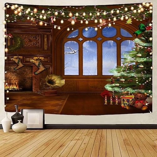 decorazioni natalizie babbo natale albero di natale festa di natale grande arazzo da parete decorazione artistica sfondo fotografico fondale coperta appeso casa camera da letto soggiorno camino calza