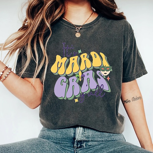 Per donna maglietta Cotone Alfabetico Stampa Carnevale Giornaliero Fine settimana Di tendenza Manica corta Rotonda Nero Primavera estate