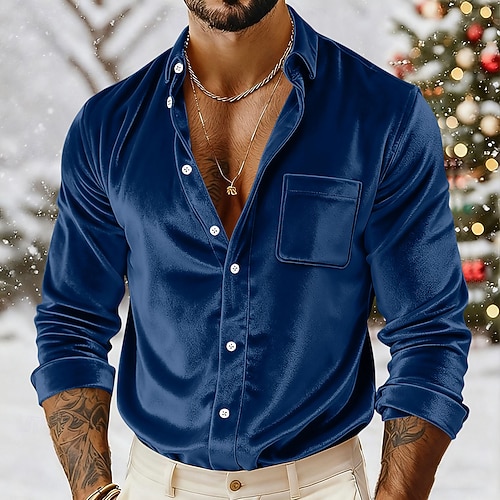Per uomo Camicia Camicia casual Camicia con Bottoni Camicia di Natale Camicia di velluto Blu Nero Giallo Rosso Verde Manica Lunga Tinta unica Colletto a Camicia Carnevale Natale Tasca Abbigliamento