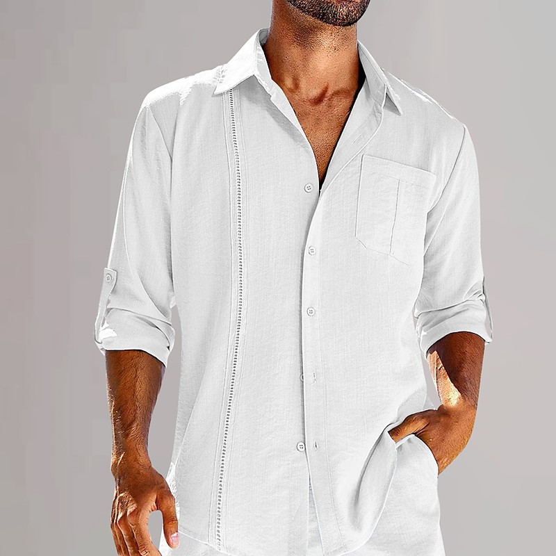 Men's Cotton Linen Shirt Plain Vacation Casual Black White Blue Long Sleeve Lapel Spring Summer Clothing Apparel
