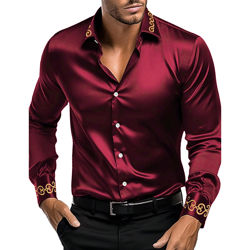 Men's Shirt Satin Shirt Dress Shirt Casual Shirt Button Up Shirt Plain Formal Wedding Black White Red Blue Long Sleeve Lapel All Seasons Clothing Apparel Plain