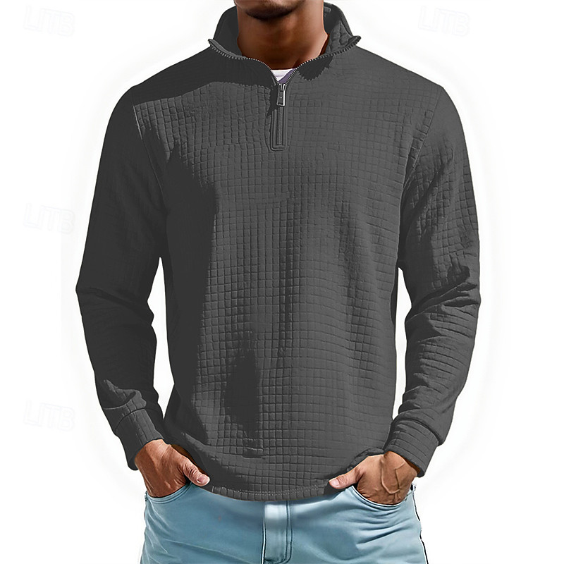 Men's Polo Polo Shirts Vacation Street Quarter Zip Long Sleeve Fashion Basic Plain Spring Fall Tailored Fit Blue Black Green Light Grey Coffee Polo