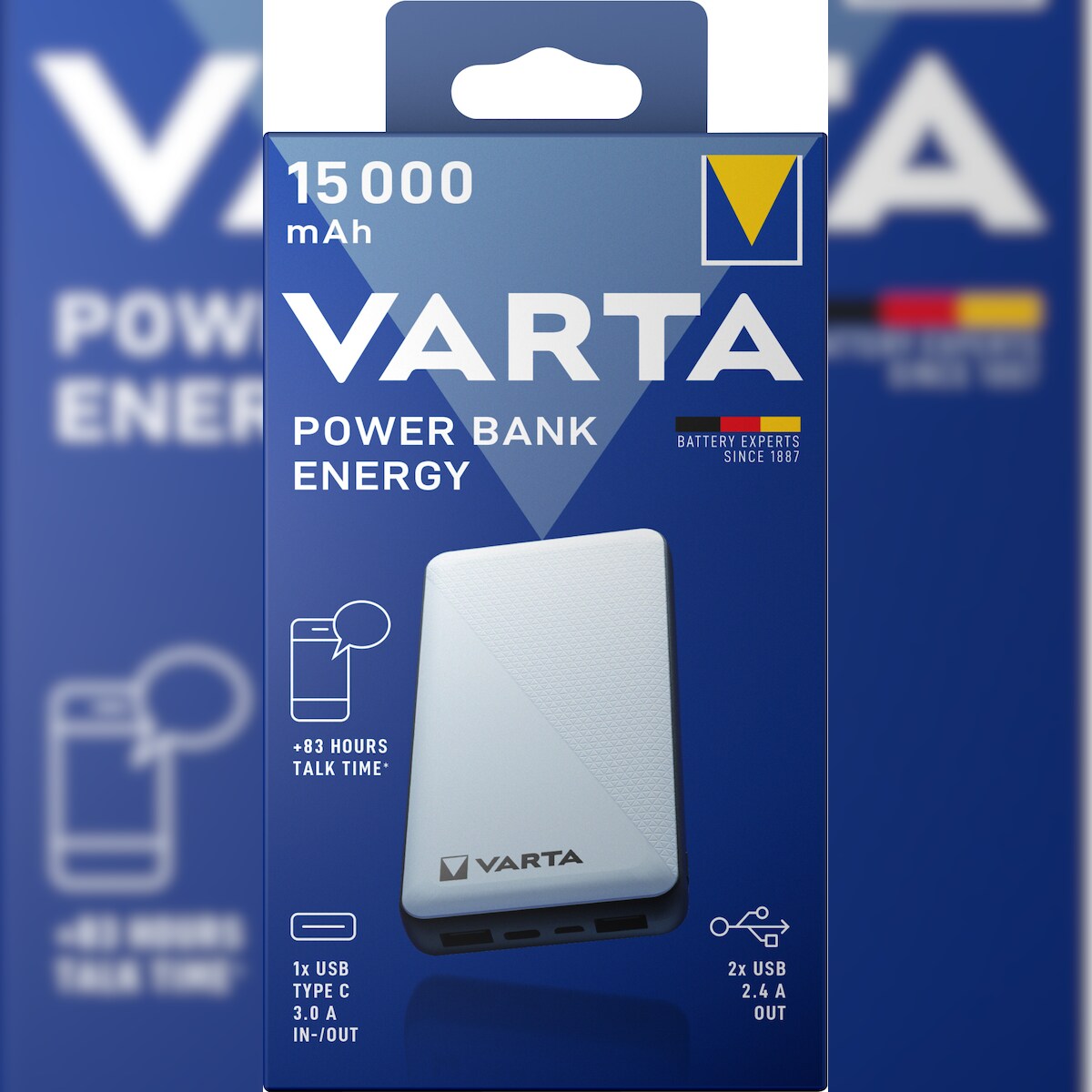 Varta Akku Powerbank, 5V/15.000mAh, Energy, weiss 2xUSB-A/Micro-B/-C
