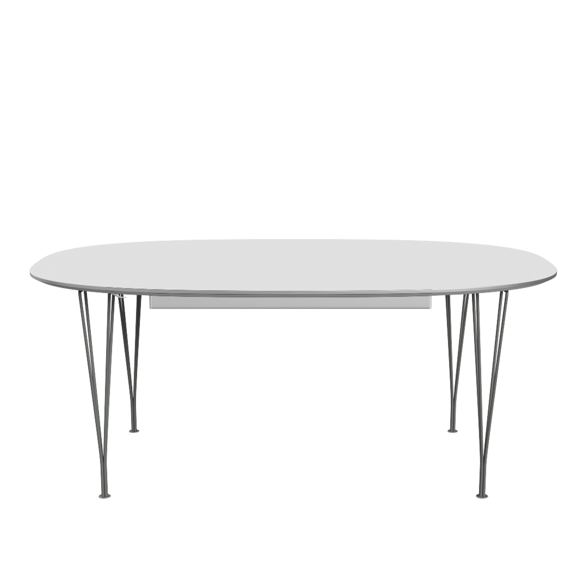 Fritz Hansen - B620 Superellips Utdragbart, Laminat, Vit, Grå pulverlack - Matbord - Arne Jacobsen,Bruno Mathsson,Piet Hein