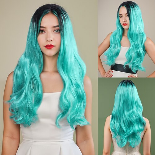 Synthetische Perücken Bodywave Curly Webart Stufenschnitt Mit Pony Maschinell hergestellt Perücke 26 Zoll A1 Synthetische Haare Damen Klassisch Bequem Farbverläufe Mehrfarbig