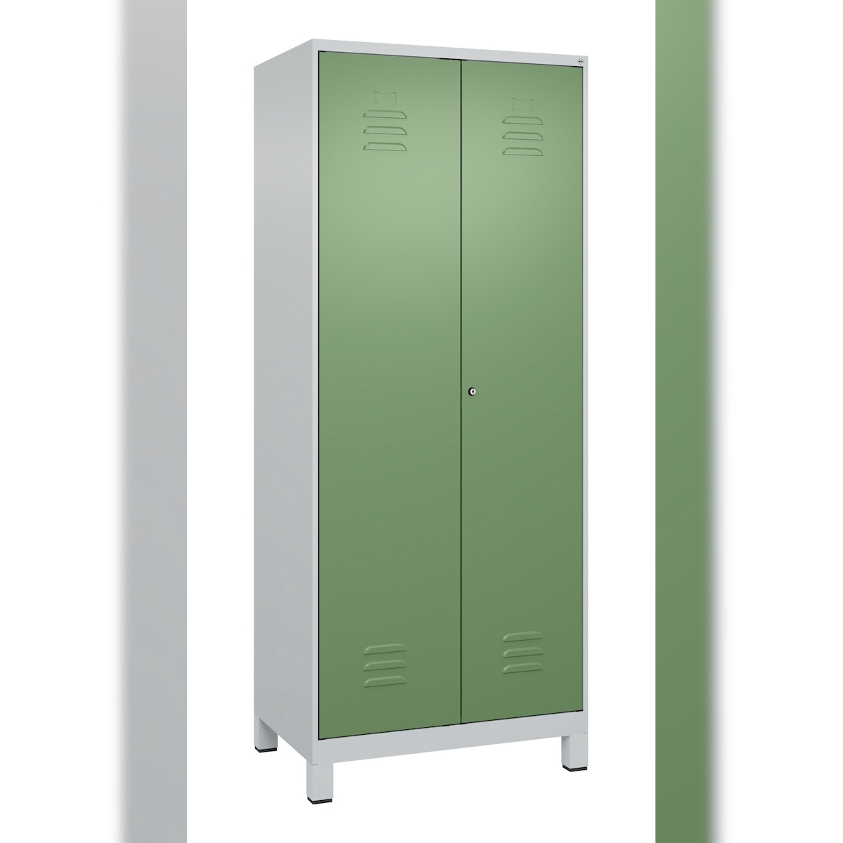 C+P Doppel-Spind Classic PLUS, Füßen, 2 Abteile, HxBxT 195x80x50cm, Zylinderschloss, Hellgrau/Resedagrün von PROREGAL