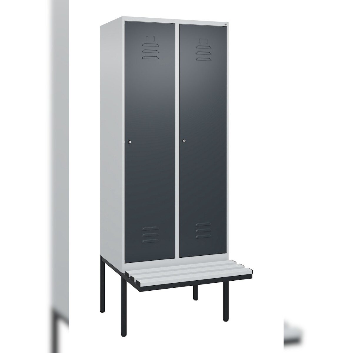 C+P Spind Classic PLUS, Kunststoff schwebende Sitzbank, 2 Abteile, HxBxT 212x80x82cm, Zylinderschloss, Hellgrau/Anthrazit von PROREGAL