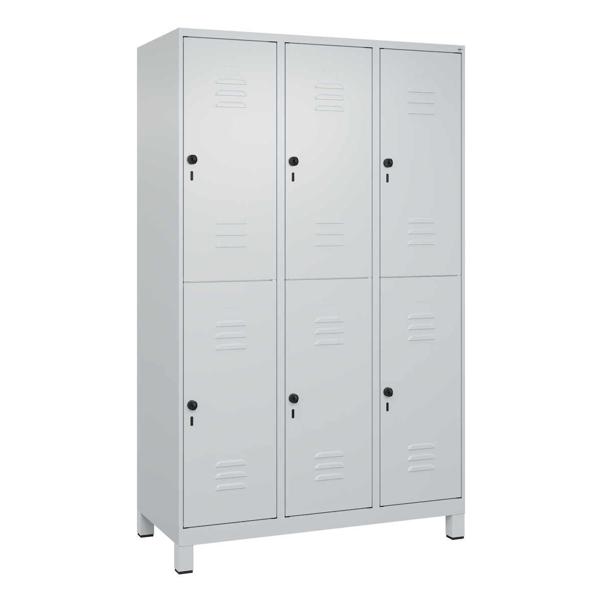 C+P Spind Classic PLUS, Füßen, 6 Abteile, HxBxT 195x120x50cm, Sicherheitsdrehriegel, Verkehrsweiß von PROREGAL