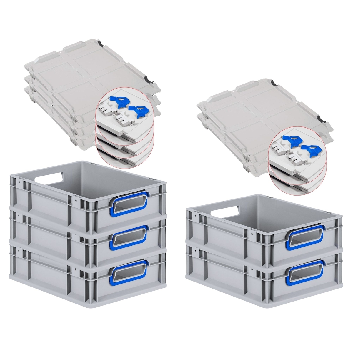 PROREGAL 5x Eurobox NextGen Grip mit Scharnierdeckel & blauen Verschlüssen | HxBxT 17x30x40cm | 16 Liter | Griffe offen | Glatter Boden