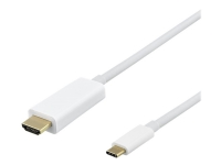 DELTACO - Adapterkabel - 24 pin USB-C han til HDMI han - 2 m - hvid - 4K60Hz (4096 x 2160) support