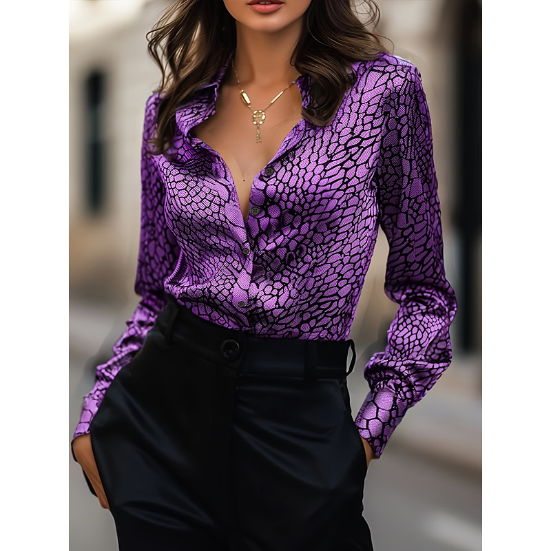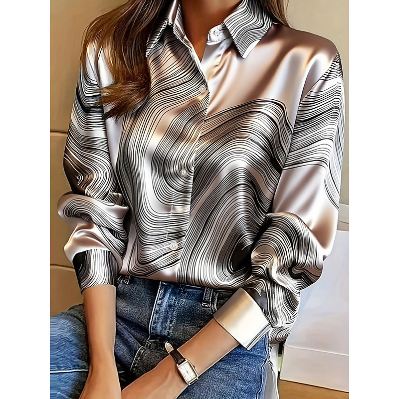 Women's Work Shirt Graphic Geometric Elegant Stylish Basic Long Sleeve Shirt Collar Regular Tops Work Party Evening Wear Daily Yellow Pink Khaki Spring, Fall, Winter, Summer