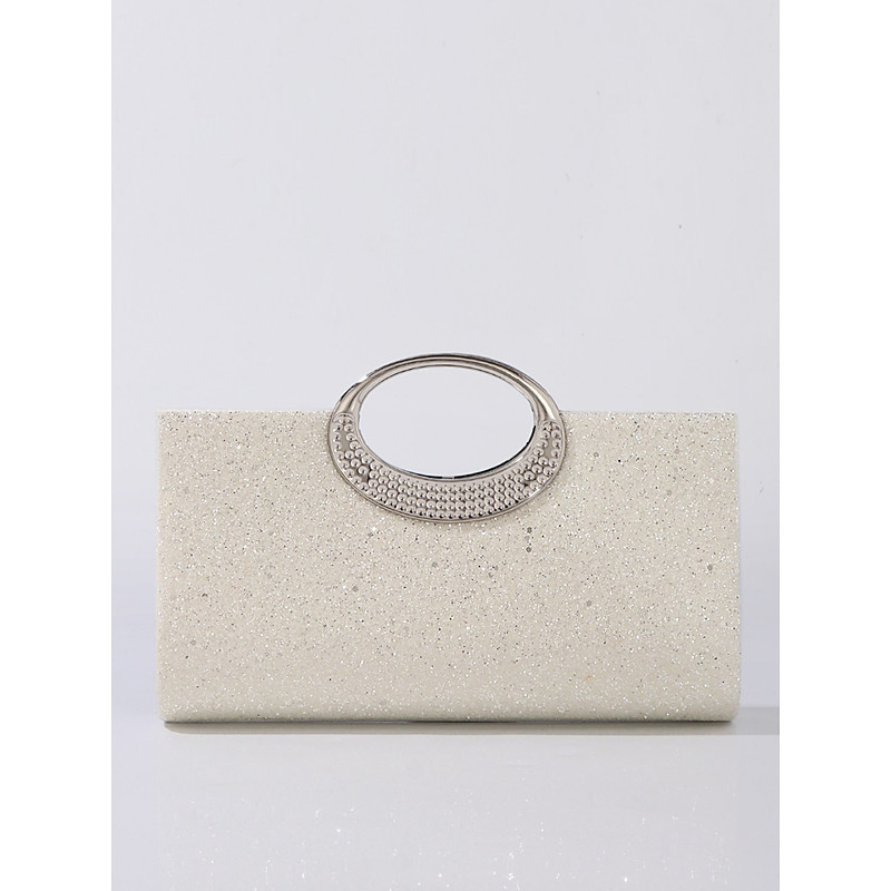 Women's Glitter Silver Gold Evening Clutch Bag with Metallic Ring Handle, Elegant and Stylish Handbag for Parties, Weddings and Formal Event