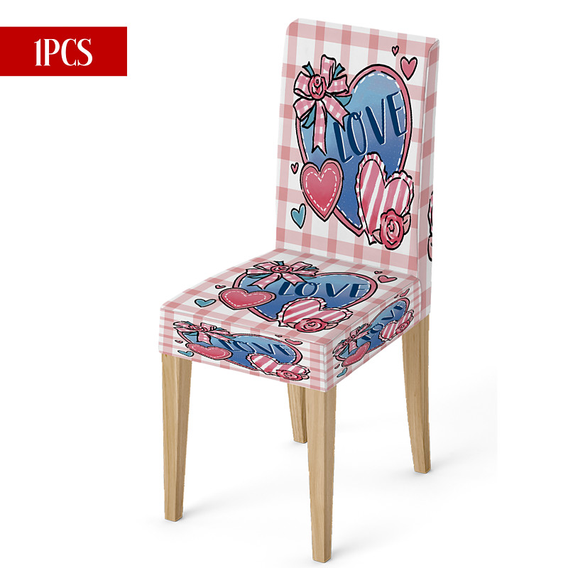 Valentine's Day Stretch Dining Chair Cover Black White Buffalo Check Heart Car Bowknot Chair Back Slipcover Washable Winter Home Restaurant Living Room Kitchen Decor 1/4/6 Pcs