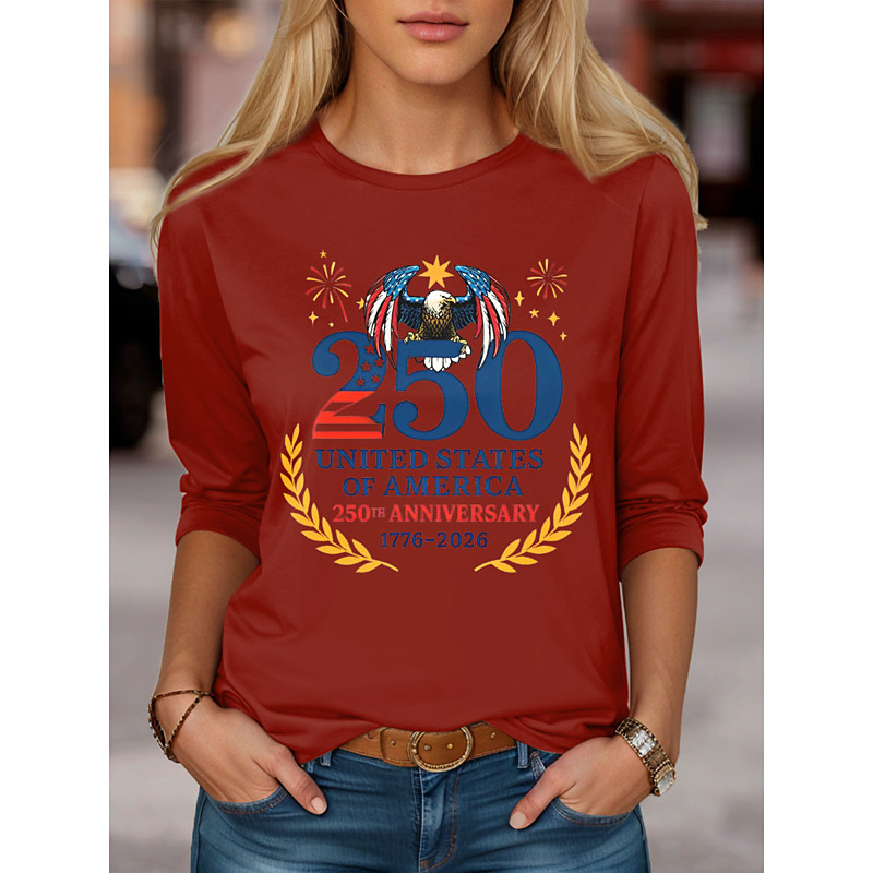American 250th Women's Independence Day T Shirt Graphic USA Fashion Stylish Classic Long Sleeve Crew Neck Round Neck Regular Tops Daily Weekend Print Blue Black White Red Summer Spring Fall