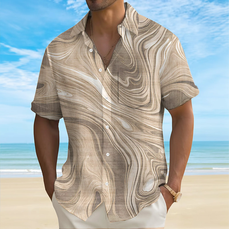 Men's Gradient Waves Marble Shirt Summer Shirt Button Up Shirt Short Sleeve Fashion Casual Outdoor Vacation Dailywear Summer Spring Turndown 3D Print Collared Shirts Front One Pocket White Blue Khaki