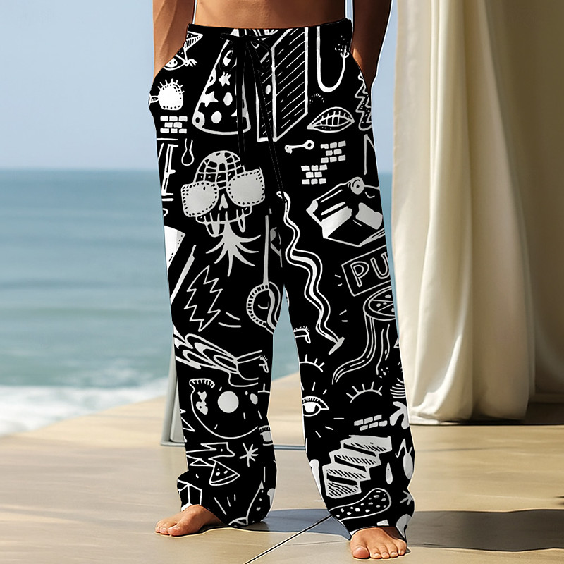 Men's Stick Figure Trousers Baggy Pants Casual Pants Mid Waist Vintage Retro Outdoor Vacation Streetwear Elastic Drawstring Waist Linen-Like Pants with Pockets Spring Fall 3D Print Black White Pink