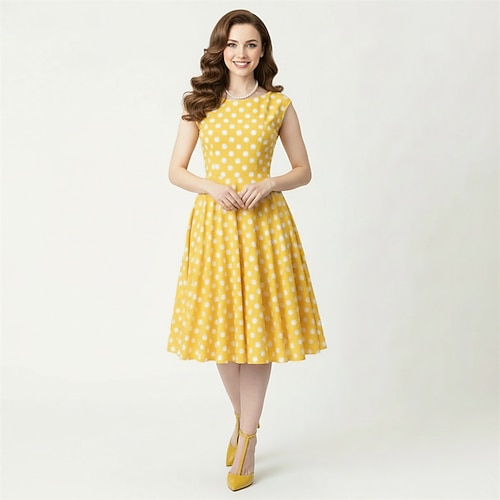 Retrò Vintage Anni 1950 Hepburn Midi Vestito Abito a trapezio Vestito Svasato Pois Aderente Svasato Costume Per donna Carnevale San Valentino Casuale Ritorno a casa Festa a tema retrò Adulti Vestito