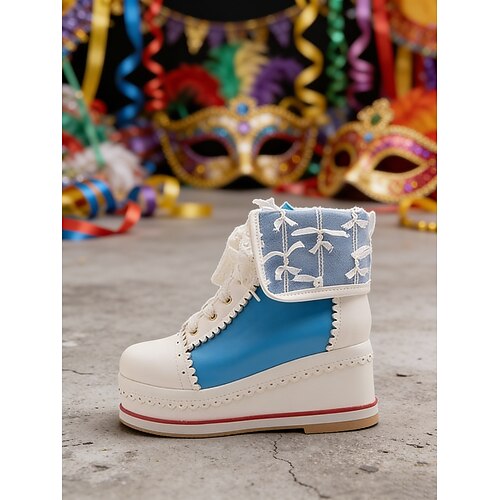 stivaletti da donna con zeppa arancione e rifiniture in pizzo – scarpe cosplay con risvolto per costumi di carnevale, cosplay anime e feste a tema