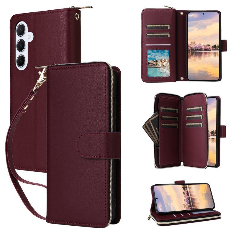 R20 Samsung Galaxy A55 5G Plånboksfodral Dragkedja Ställning Konstläder - Vinröd