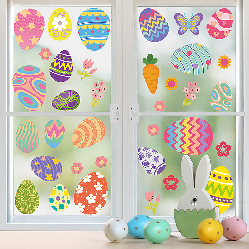 2 Sheet Easter Window Clings Wall Stickers, Easter Egg Bunny Static Cling Decorations for Living Room, Window Glass, and Holiday Scenes