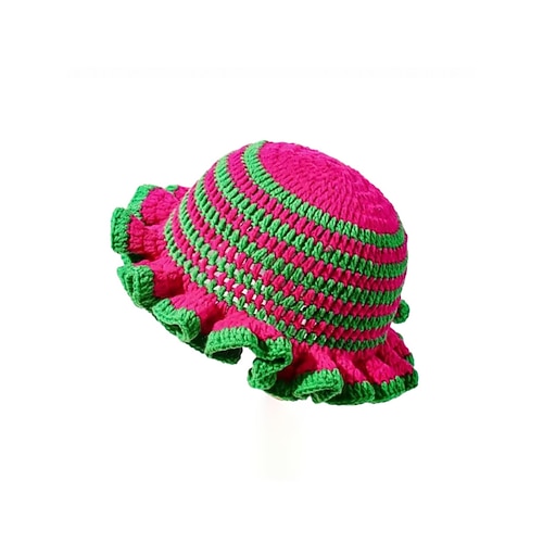 Cappello a secchiello con volant all'uncinetto per donne – Cappello festival multicolore a maglia arcobaleno per il Carnevale festa in costume e stile boho chic