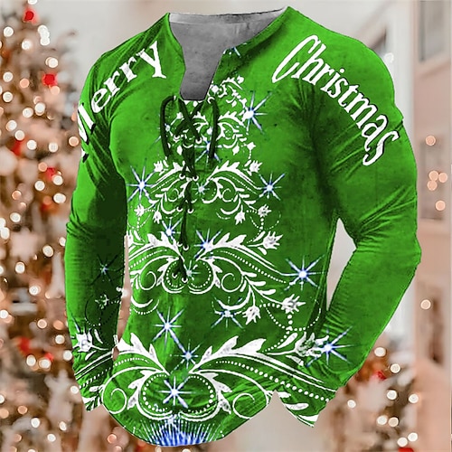 maglietta di natale maglietta da uomo tee tee lettera grafica collare verde nero rosso blu navy 3d stampa all'aperto natale manica lunga lace up stampa abbigliamento abbigliamento di base designer