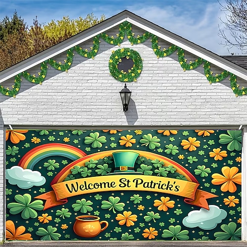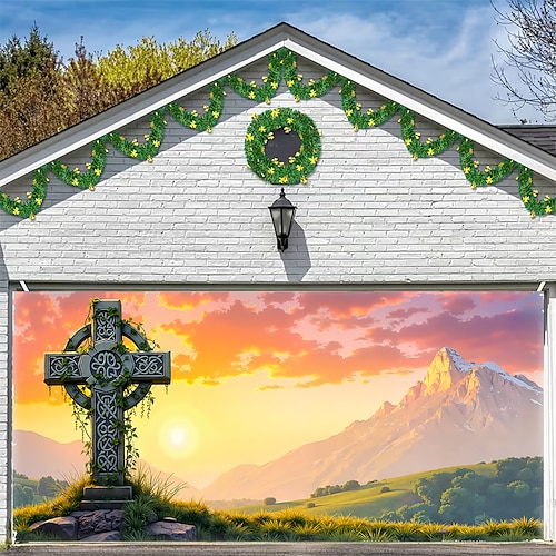 Festa di San Patrizio arazzo Copertura per porta del garage Grande appeso Croce celtica Carino 3D Pittoresco Da serata All'aperto Vacanze Sfondi di ripresa Yarda Arredamento per la casa