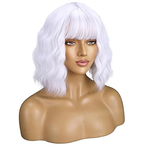 Parrucca di Carnevale Rosa Blu Bianco Riccio Ondulato Corto Parrucca sintetica da festival Martedì grasso Parata Capelli per costumi da cosplay per Da donna