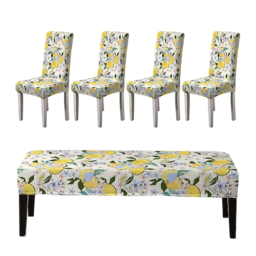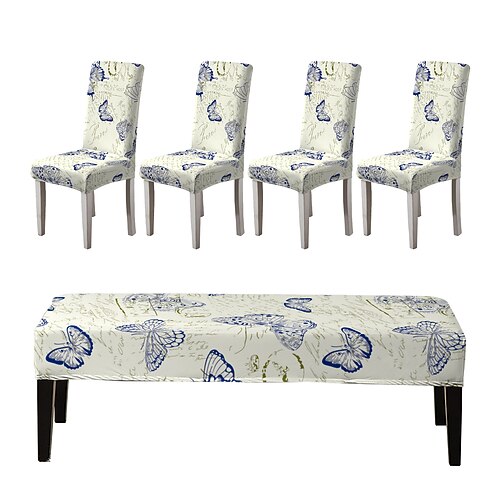 Set di fodere per sedie da pranzo e fodere per panche stampate, adatte per sedie da pranzo, include 5 pezzi, 4 fodere per sedie e 1 fodere per panca.
