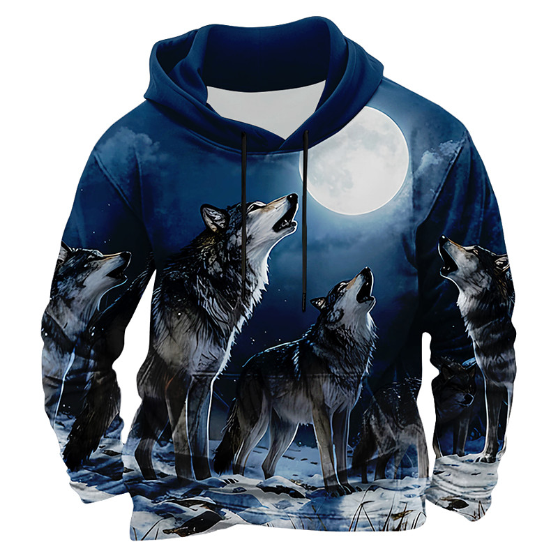 Men's Lion Tiger Hoodie Sweatshirt 3D Fantasy Long Sleeve Crew Neck Gift Club Streetwear Black Blue Dark Blue Dark Blue 2 Drawstring Fall Winter Designer S M L XL XXL XXXL