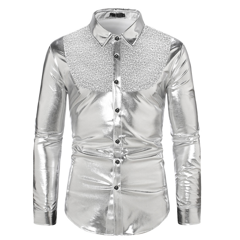 Men's Tuxedo Shirts Color Block Party Holiday Silver Red Gold Long Sleeve Turndown Spring Fall Clothing Apparel Sequins