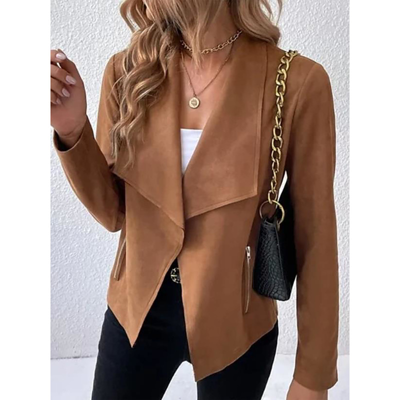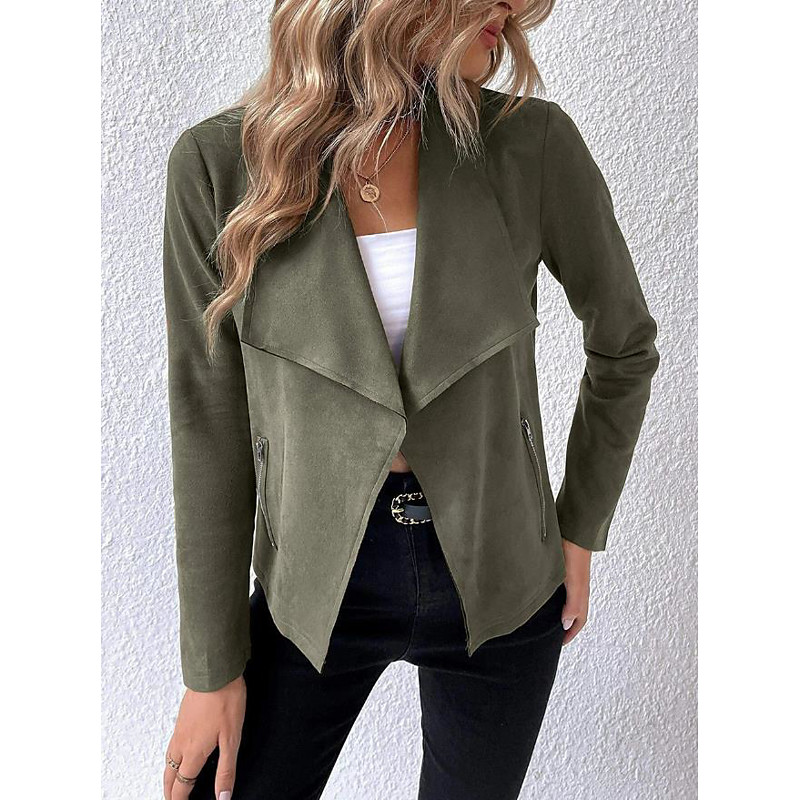 Women's Jacket Biker Jacket Dailywear Solid Color Windproof Fashion Regular Fit Outerwear Long Sleeve Spring Black S