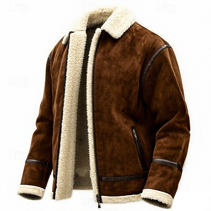 Men's Winter Coat Faux Suede Jacket Fleece Jacket Casual Jacket Casual Daily Thermal Warm Pocket Full Zip Fall Winter Solid Color Streetwear Daily Turndown Short Black Brown Jacket