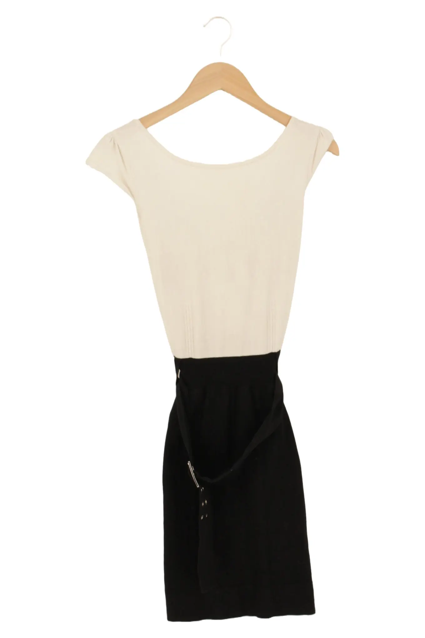 KAREN MILLEN Damen Strickkleid S Schwarz Beige Kurz Elegant