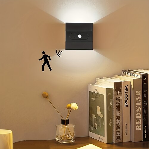 Lampada da parete a LED con sensore di movimento, ricaricabile tramite USB, luce notturna senza fili, lampada da notte per cucina, corridoio, camera da letto, illuminazione di scale e passaggi.