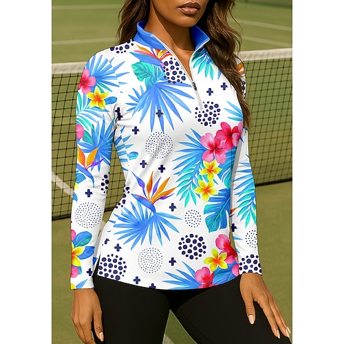Per donna Floreale Maglietta sportiva Polo da golf Maglia da tennis Maglietta da tennis Manica Lunga Cerniera Floreale UPF50 Resistente ai Raggi UV Alta elasticità Traspirante Tennis Golf Pickleball