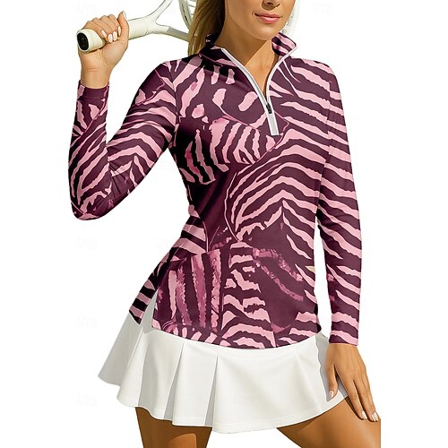 Per donna Animale Zebra Maglietta sportiva Polo da golf Maglia da tennis Maglietta da tennis Manica Lunga Cerniera Floreale UPF50 Resistente ai Raggi UV Alta elasticità Traspirante Pallavolo Tennis